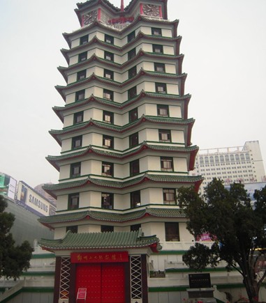 二七紀(jì)念塔,位于鄭州市二七廣場,建于1971年,鋼筋混凝土結(jié)構(gòu), 是我國建筑獨(dú)特的仿古聯(lián)體雙塔,它是為紀(jì)念京漢鐵路工人大罷工而修建的紀(jì)念性建筑物。2006年被列為全國重點(diǎn)文物保護(hù)單位,中國最年輕的全國重點(diǎn)文物保護(hù)單位(建于1971年,距今僅有不到四十年的歷史)。