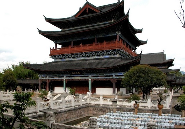 麗江古城是中國歷史文化名城,而木府可稱為麗江古城文化之"大觀園"。納西族最高統(tǒng)領(lǐng)木氏自元代世襲麗江土司以來,歷經(jīng)元,明,清三代22世470年,在西南諸土司中以"知詩書好禮守義"而著稱于世。明末時達(dá)到鼎盛,其府建筑氣象萬千,古代著名旅行家徐霞客曾嘆木府曰:"宮室之麗,擬于王室"。