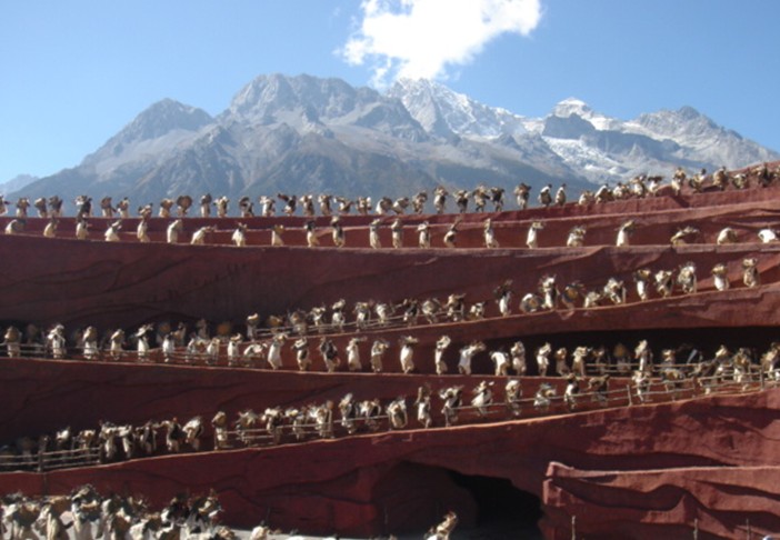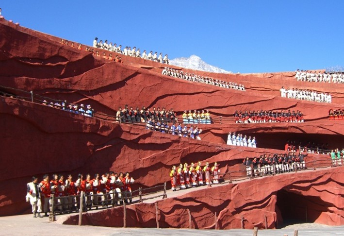2008年7月23日,版權(quán)所有山東聊城聊之旅國際旅行社有限公司,轉(zhuǎn)載必究!大型實(shí)景演出《印象•麗江》雪山篇終于在海拔3100米,世界上海拔最高的實(shí)景演出劇場—云南麗江玉龍雪山的甘海子藍(lán)月谷劇場正式公演。當(dāng)日,實(shí)景演出的總導(dǎo)演張藝謀、王潮歌、樊躍及導(dǎo)演組全體成員,云南省、麗江市的領(lǐng)導(dǎo)及全球100多家媒體齊聚這里,共同見證《印象•麗江》雪山篇的正式公演的壯麗景象。
