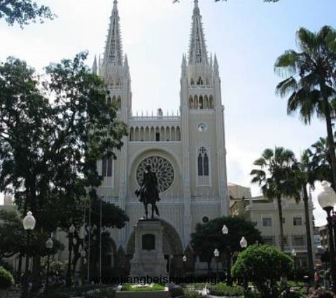 瓜亞基爾城中心是一百年廣場,廣場上高聳著1920年修建的巨大的解放紀念碑。著名的弗朗西斯科大教堂在廣場不遠的地方,這座建筑氣勢宏偉,裝飾華麗,是瓜亞基爾的建筑珍品。教堂前面有一座風景優(yōu)美的公園,在公園樹林深處可觀賞到各種珍貴動物。瓜亞基爾最繁榮的街道是10月9日大道,路旁商店比鱗而立,人群擁擠。大道穿過一百年廣場,通向馬萊孔濱水區(qū),濱水區(qū)沿瓜亞斯河岸鋪開。壯觀典雅的市政廳和政府官就坐落在這一帶。漫步街頭,可看到南美獨立運動的領(lǐng)袖玻利瓦爾和圣馬丁的塑像。1822年7月26日—27日,這兩位民族英雄就在此共商大計,決心把西班牙殖民者全部趕出拉美大陸并爭取南美各國的徹底獨立。這次歷史性的會晤為南美人民贏得了偉大的勝利。