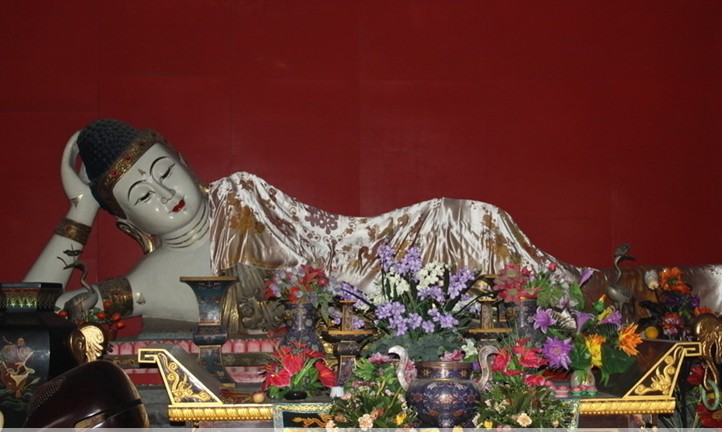 穿過天王殿,其后有大雄寶殿。殿內(nèi)供奉著釋迦牟尼、阿彌陀佛、藥師佛的神像,屏墻后面懸塑觀音像,兩側(cè)有十八羅漢侍立。大雄寶殿之后,又有藏經(jīng)閣藏書八百萬卷,這是寺僧藏經(jīng)說法的場所。殿前甬道有明萬歷年間鑄造的大鐵鐘一口,重約650公斤。藏經(jīng)閣的東南面是禪房,是僧人參禪打坐的地方,對面的西禪房,則是負責接待賓客的堂室。
