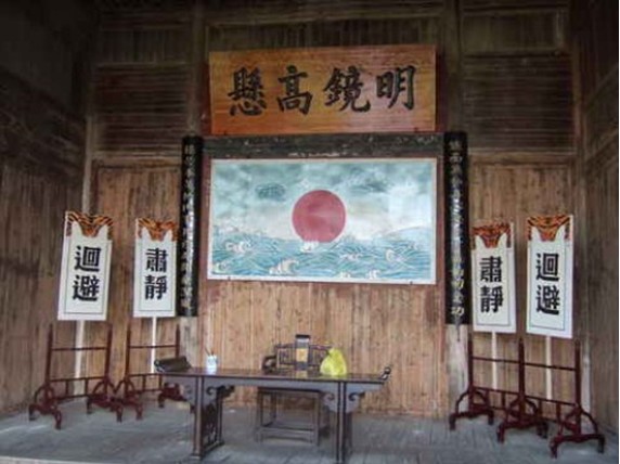 現(xiàn)存浮梁古縣衙,建于清朝道光年間,距今 170年,占地64495平方米(95畝),規(guī)模宏偉,是我國江南唯一保存完整的封建時代縣級衙署,有“中國第一縣衙”、“江南第一衙”之美稱?,F(xiàn)保留中軸線上的照壁、頭門、儀門、衙院、大堂、二堂及三堂,基本保持了縣衙原有風貌。整座建筑坐北朝南,錯落有致,廊道相接,渾然一體,莊嚴和輕松并存,厚重與俏雅生輝。游歷古縣衙,在欣賞“奇妙”建筑藝術的同時,也感受到封建衙門官府威嚴氣派。衙署內陳列了古代官服、刑具、十八般兵器、訊杖、官轎、夾棍,“帝制早廢,縣衙猶存”,“珍貴史跡,進門有益”,游客至此,既可以領略古代衙府的風貌,了解封建社會衙門的歷史、政治、文化知識;也可以寓教于樂,過把古代五品知縣癮,置身其中,穿越歲月時空走廊,寓教于游玩之間。