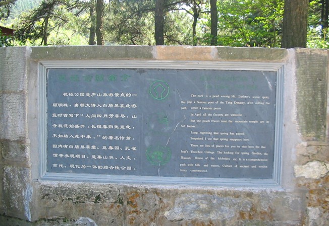 花徑公園位于牯嶺街西南2公里處的如琴湖畔。有公路抵達(dá),沿大林路步行,順路可見冰川遺跡——冰桌巨石,又叫飛來石?;◤较鄠魇翘拼娙税拙右自佋姟洞罅炙绿一ā返牡胤?。白居易被貶任江洲(九江)司馬時,于公元816年登廬山游覽。時值暮春,山下桃花已落而此處卻桃花盛開,白居易有感吟詩一首:“人間四月芳菲盡,山寺桃花始盛開。長恨春歸無覓處。”故后人稱此地為“白司馬花徑”,并建造了“景白亭”。1988年在園中建有“白居易草堂陳列室”,1996年著名雕塑家王克慶制作的白居易石像立于湖畔。花徑亭中一橫石上刻有“花徑”二字,傳說系白居易手書。如琴湖形如提琴,故名,有曲橋通往湖心島?;◤焦珗@中繁花似錦,亭臺碑碣,版權(quán)所有山東聊城聊之旅國際旅行社有限公司,轉(zhuǎn)載必究!曲徑通幽,湖光山色,風(fēng)景如畫。