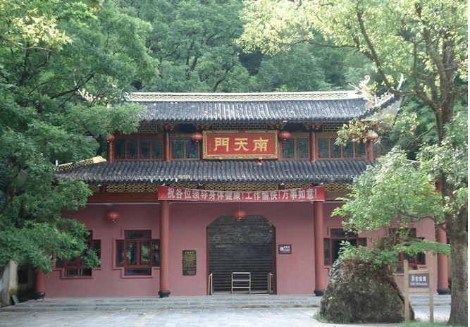 在怪石簇?fù)淼腻\繡谷中,有一塊巨石,懸空伸出,宛如懸在凌空中的一座橋,人稱“天橋”。相傳朱元璋與陳友諒大戰(zhàn)鄱陽湖時(shí),敗逃至此,在前臨深壑,后有追兵的緊急關(guān)頭,忽然從天降下一條金龍,橫臥在深壑之上,化為一石橋,待朱元璋縱馬過橋后,頓時(shí)烏云滾滾,雷聲隆隆,天昏地暗,只見一道灼眼的藍(lán)光將石橋擊斷。橋斷后,云散日出,一切又恢復(fù)了原來的面貌,仍然是雙崖對(duì)峙的絕澗。這當(dāng)然是神話傳說,其實(shí)這里原來是一處巨大的斷層,峰高壑深,峭壁連片,山崖上有一塊褐色巨石伸向深澗,遠(yuǎn)遠(yuǎn)望去似一斷橋。大自然界的鬼斧神工與美麗動(dòng)人的傳說,相映生輝,將游人帶入了神奇的境界。