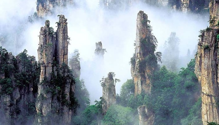 武陵源獨特的石英砂巖峰林在國內外均屬罕見,素有“奇峰三千”之稱。在217.2平方公里的核心景區(qū)中,有石英砂巖山峰3103座,峰體分布在海拔500-1100米,高度由幾十米至400米不等。峰林造型若人、若神、若仙、若禽、若獸、若物,變化萬千,這些突兀的巖壁峰石,連綿萬頃。每當雨過天晴或陰雨連綿天氣,山谷中生出的云霧繚繞在層巒疊嶂之間,云海時濃時淡,石峰若隱若現(xiàn),景象變幻萬千。