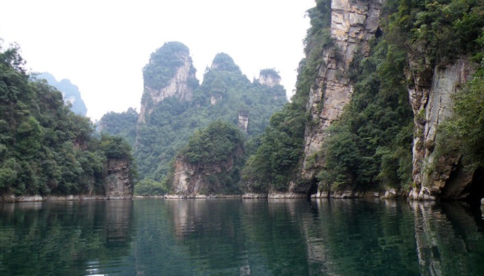 張家界寶峰湖水深72米,長2.5米公里,以其秀麗的湖光水色與幽野的洞天情趣成為武陵源水景風(fēng)光的代表之作,電視劇《西游記》中花果山水簾洞外景就拍攝于“奇峰飛瀑”。