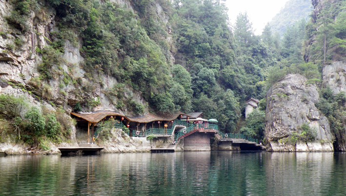 湖中有兩座疊翠小島,近岸奇峰屹立,峰回水轉(zhuǎn)。泛舟漫游,只見一湖綠水半湖倒影,充滿詩情畫意。“云梯萬丈上天臺,高峽平湖一鑒開,王母瑤池金扶,浣沙仙女下凡來”游寶峰湖,你就會欣賞到這樣的詩情畫意。群峰擁抱的寶峰湖,長約2.,5公里,湖猶如一面寶鏡,四面青山,一泓碧水,蕩槳溫游,格外愜意。坐在船上,環(huán)顧四周,千山聳翠,俯視水中,倒影慢移,碧水照相館得群峰綠,人面桃花水映紅。真是靜極了,美極了!韓劇《九天洞》拍攝的湖水就是寶峰湖。