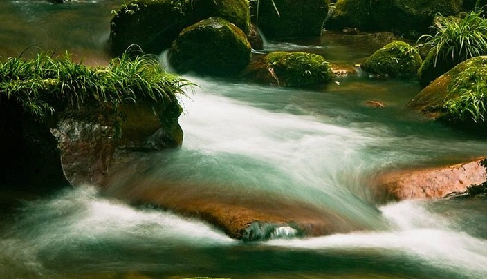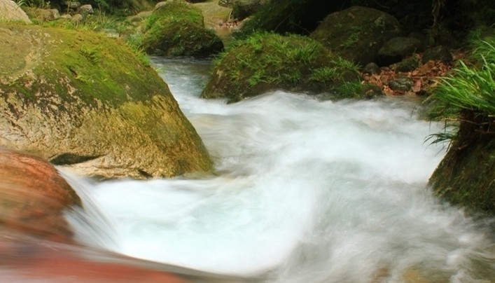 9、紫草潭:位于金鞭溪中游。原名紙草潭,因清代山民造土紙在此漂流而名。潭寬4米,長 15 米,深2米。上連一石潭。潭底皆紫紅色巖石,潭上端溪流湍急,跌宕有聲,水花如滾珠瀉玉。潭內(nèi)水面平靜,清澈見底,魚蝦悠游其中。 游魚細石,直視無礙,夾岸林林蒼翠,石峰屏列。潭邊巨石橫臥,光潔如玉。
