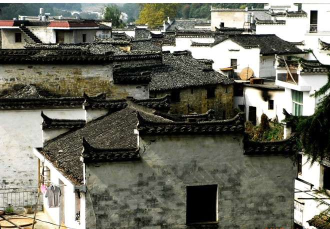 在江西省婺源縣曉起村,據(jù)說是江澤民的祖居地,是典型的徽派古生態(tài)民俗文化村,既有周莊的小橋流水,又有香格里拉的寧靜悠遠(yuǎn),更有古樸純實(shí)的民風(fēng)民情。婺源曉起坐落于婺源縣城東,距離縣城約二十公里,是段莘水和曉起水交合處,始建于公元787年。如今的曉起,被評為國家級農(nóng)業(yè)生態(tài)示范村。曉起有上、下曉起之分。村屋多為清代建筑,風(fēng)格各具特色,村中小巷均鋪青石,曲曲折折,回環(huán)如棋局。主要景觀有雙亭聳峙、楓樟流蔭、進(jìn)士第、大夫第、榮祿第、江氏祠堂、磚雕門罩、養(yǎng)生河與古濯臺(tái)等。“古樹高低屋,斜陽遠(yuǎn)近山,林梢煙似帶,村外水如環(huán)”。