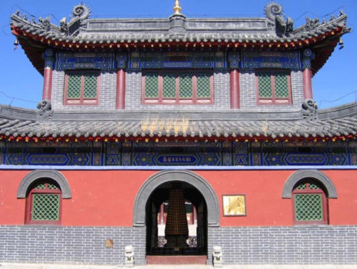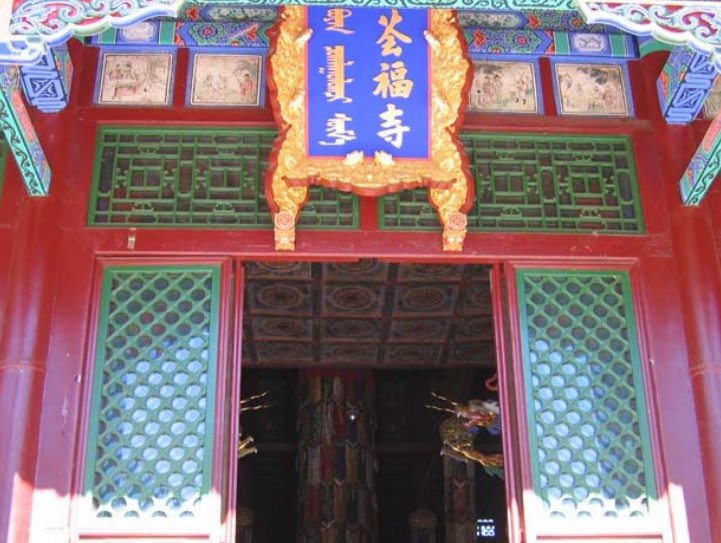 。共四十九間,高18米,占地面積620平方米,殿內(nèi)原有的《甘珠爾經(jīng)》、《丹珠爾經(jīng)》和建廟以來保存的主傳、經(jīng)卷、歷史籍、古幢、佛像、御賜金匾“金枝衍慶”(康熙帝書),“懿微堂”(乾隆帝書),“佛光普照”(嘉慶帝書)都被1913年1月18日(民國二年十二月十二日)午后的大火燒毀。