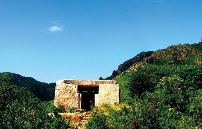 遼太祖陵位于赤峰市巴林左旗哈達(dá)英格蘇木石房子村大布拉格山谷中,這里相傳為契丹始祖發(fā)祥之地,遼太祖耶律阿保機(jī)駕崩后葬于此。位于巴林左旗石房子村西北。為守護(hù)和祭祀遼太祖陵墓的奉陵邑,陵在城西北約2公里的山谷中。城垣分為內(nèi)外兩城,東南向,外城周圍約2公里,殘墻高約6米,4個門址尚存,東門和北門還可見到甕城痕跡。內(nèi)城只筑有南墻,高略同于外城墻,墻上正中開設(shè)大門,門內(nèi)有幾處高大的享殿、祭殿基址。西北隅現(xiàn)存有石房子一座,花崗巖大石板構(gòu)筑,高3.5米,寬6.7米,進(jìn)深4.8米,全屋只用7塊大石板,這種結(jié)構(gòu)的石室,為中國古代建筑物中所少見,也是遼代建造石室中僅存的一座。內(nèi)城南門外有直通至外城南門的大街,寬約40余米。兩旁有官廨、膳房、作坊及兵卒住所等建筑遺址。南城門外的大道兩側(cè)及其西面,有兩組小型建筑群的基址,用石塊壘砌房基,布局大致整齊,為守陵戶居住區(qū),面積大于城址。為全國重點(diǎn)文物保護(hù)單位。