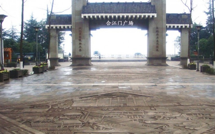 合江門(mén)金沙江、岷江交匯一側(cè)緊臨合江門(mén)地標(biāo)廣場(chǎng),建成時(shí)間是2001年3月20日。占地面積1.83萬(wàn)平方米,有噴泉、牌坊、宜賓賦等景觀(guān)。