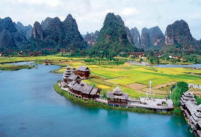 作為國家AAAA景區(qū)、全國首批農(nóng)業(yè)旅游示范點(diǎn)和世界旅游組織的推薦旅游地,陽朔世外桃源景區(qū)向我們展示了一幅古橋、流水、田園、老村與水上民族村寨融為一體的絕妙畫圖。陽朔“世外桃源”主要有荷花池、燕子湖、燕子洞、侗鄉(xiāng)風(fēng)情和原始部落組成。