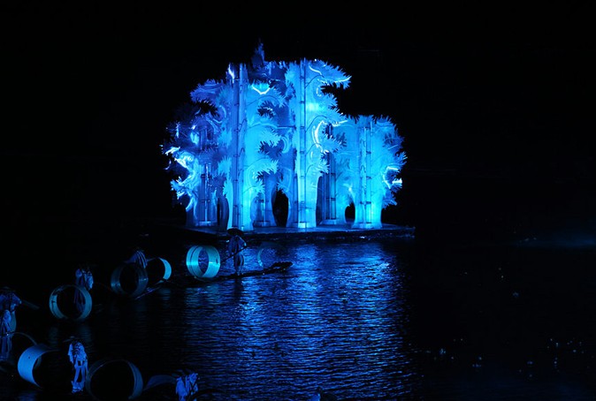 世界上最大的山水實(shí)景劇場(chǎng),全球最具魅力的導(dǎo)演,傳唱最久遠(yuǎn)的民族山歌,史無(wú)前例的桂林漓江風(fēng)情巨獻(xiàn)。大型桂林山水實(shí)景演出《印象劉三姐》是錦繡漓江-劉三姐歌圩景區(qū)之核心工程,由桂林廣維文華旅游文化產(chǎn)業(yè)有限公司投資建設(shè)、我國(guó)著名導(dǎo)演張藝謀出任總導(dǎo)演,國(guó)家一級(jí)編劇梅帥元任總策劃、制作人,以及兩位年輕導(dǎo)演--王潮歌、樊躍的加盟,數(shù)易其稿,歷時(shí)三年半努力制作而成。她集漓江山水風(fēng)情、廣西少數(shù)民族文化及中國(guó)精英藝術(shù)家創(chuàng)作之大成,是全世界第一部全新概念的"山水實(shí)景演出"。演出集唯一性、藝術(shù)性、震撼性、民族性、視覺性于一身,是一次演出的革命、一次視覺的革命。