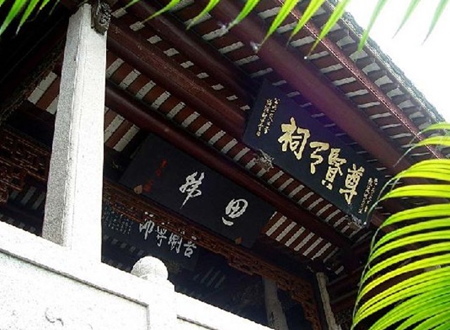 各位游客,現(xiàn)在我們已經(jīng)來(lái)到了韓江之濱的韓文公祠。唐憲宗元和十四年(公元819年),韓愈因“諫迎佛骨”,被貶謫潮州。韓愈在潮州期間祭鱷釋婢,興學(xué)勸農(nóng),歷代潮人都很懷念他的功績(jī),韓祠內(nèi)有一塊碑刻:“若無(wú)韓夫子,人心尚草菜。”便是對(duì)他極高的評(píng)價(jià)。