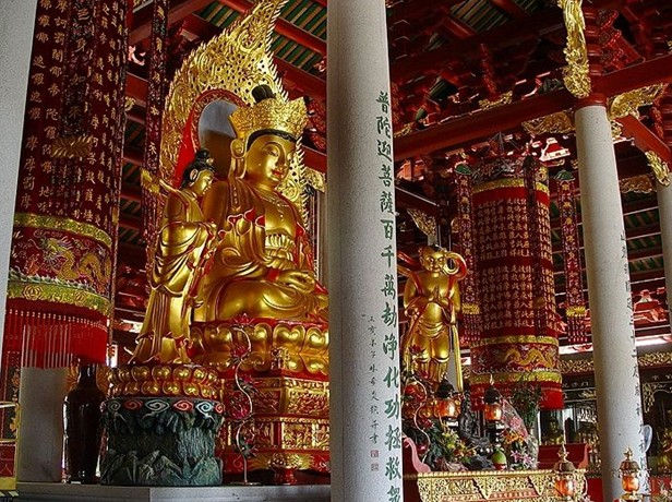 三中全會之后,宗教政策得到貫徹,該寺產(chǎn)權(quán)落習(xí)歸還宗教團體——潮州市佛教協(xié)會管理使用。在市佛協(xié)的帶領(lǐng)下,四眾熟誠鄉(xiāng)應(yīng),捐資修復(fù)成一座小殿堂,開展宗教動并對外開放。潮州市升格之后,該寺產(chǎn)權(quán)移交給湘橋區(qū)佛協(xié)會管理和使用。九三年五月林希炎、柯紫蓉居士陪同宏生大和尚來寺朝山禮圣,見松林峰氣勢宏偉,茂林沃野花果林木婆娑;寺靠山峰雄偉;雨邊山勢落脈蜿蜒環(huán)拱山門,狀似龍象守寺;寺前橫堤護基,湖泊職鏡;遠望筆架(山)、葫蘆(山)、金山、韓江濱江、鳳城璀璨,雄偉壯觀,故知昔日潮郡名人留詩詠景之不虛,詩曰:“頭枕松林峰,腳踏黃枝湖。版權(quán)所有山東聊城聊之旅國際旅行社有限公司,轉(zhuǎn)載必究!左手挽筆架,右手托葫蘆。”不愧為名勝石跡。于是發(fā)大原心擴建重興松林古寺。遂請名工程師做總體規(guī)劃設(shè)計、規(guī)劃用地共六十多畝;總建筑面積為九千五百多平方??傮w建筑布局大致為五部分,中軸線為山門、金剛殿、天五殿、圓通寶殿、大雄寶殿、藏經(jīng)樓;東側(cè):東長廊、地藏殿、鐘樓、客堂、齋堂、僧舍、佛教文化中心樓、五百羅漢堂;西側(cè):西長廊、伽藍殿、鼓樓、僧舍、念佛堂、普同塔、敬老院;山門前配套:東、西雙石塔、放生池、曲徑、涼亭、橋、牌坊、寺道,廣場配套等。