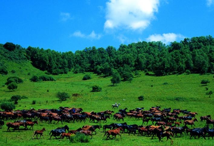 關(guān)山草原草豐林茂,雨水充沛,面積廣闊,自古以來就是著名的天然牧場,養(yǎng)馬、騎馬已是當(dāng)?shù)氐膫鹘y(tǒng)。關(guān)山景區(qū)有2000多匹馬,其中經(jīng)過訓(xùn)練、檢疫、排選、可供游客乘騎的有400多匹。到關(guān)山草原騎馬觀景既是綜合體能和魄力的一種鍛煉,也是賞心悅目的一件趣事:當(dāng)您騎在馬上悠哉悠哉地慢步在草原上仔細觀賞周邊景色時,您會被美不勝收的自然景色所陶醉而流連忘返;當(dāng)您騎在快馬上象疾風(fēng)似的在綠色的草地上馳騁時,您會有古代武將縱馬揚鞭馳騁疆場的感覺,會因自己能揮灑自如地駕馭快馬而倍感自豪;當(dāng)您驅(qū)馬到山頂沿著山脊前進時,山兩側(cè)廣闊的草原、茂盛的森林、爭奇斗艷的花草、古樸如畫的田園風(fēng)光會使您忘記都市的喧囂而融入自然……