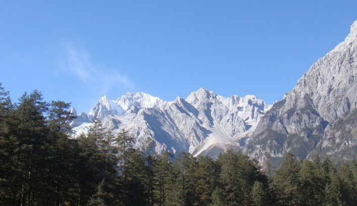 三個(gè)索道的抵達(dá)地,都不是觀賞玉龍雪山數(shù)峰的最佳地。三地比較,我覺(jué)得算牦牛坪看雪峰的位置相對(duì)好看一些。而最佳的觀玉龍雪山全貌的地方,在去寶山石頭城路上的鳴音鄉(xiāng)(過(guò)牦牛坪再前行約五六十公里)——當(dāng)然,太少人去那個(gè)地方了。司機(jī)導(dǎo)游誰(shuí)也不會(huì)介紹給你。