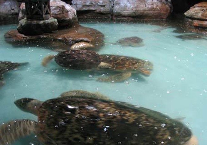 在訓練馴化了的三十多條鯊魚和兩只大海龜?shù)孽忯~池里,游客配上潛水裝備,在持有世界潛水聯(lián)合會國際潛水員證書的教練一對一地陪同下一起潛游,夠刺激安全又好玩。