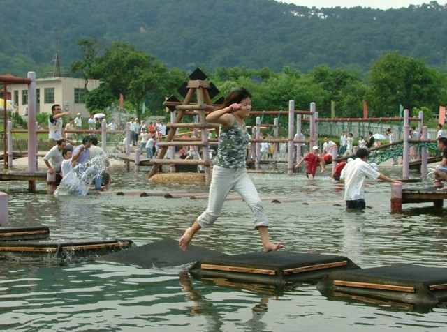 從笑翻天大門往前走50米,再左拐20米便可以看到笑翻天樂園,這里是水上玩點(diǎn)和陸地玩點(diǎn)的聚集地,在這里有花樣繁多的項(xiàng)目:踏籠飛渡、百尺竿頭、孤島求生、飛躍激流、水上鋼絲、踏水無痕、情侶橋……讓你盡情的在挑戰(zhàn)和驚險中突破自我。此外,軍體平衡木、高空電網(wǎng)讓你體驗(yàn)軍隊(duì)生活的快樂。畢業(yè)墻讓大家一起來翻越過去,一起畢業(yè)。這里還有兒童游玩區(qū),帶孩子的家長可千萬不要錯過,讓我們一起和家人闖關(guān)吧。