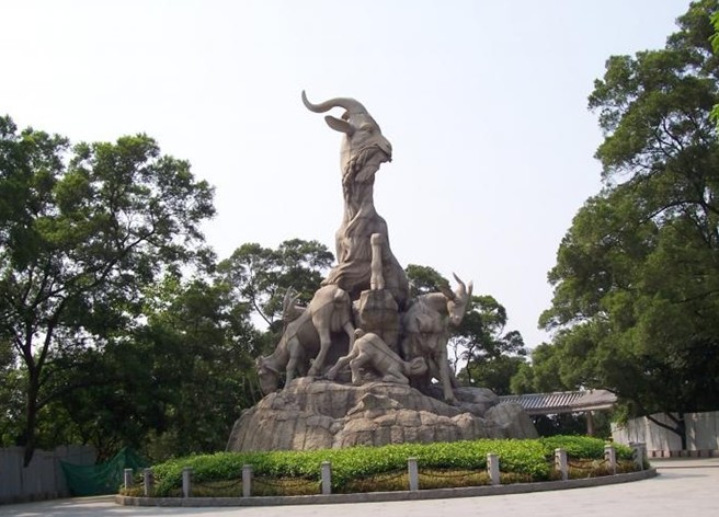 關(guān)于“五羊”、“五仙”傳說(shuō),前面已有介紹。“五羊銜谷,萃于楚庭”,是古代廣州人民向往美好生活而衍生出來(lái)的神話故事。這的確是一個(gè)美麗的傳說(shuō),對(duì)古代的百越人民來(lái)說(shuō),還有什么比“永無(wú)饑荒”更美好呢,五位仙人送給廣州人民的優(yōu)良稻種,加上廣州地區(qū)陽(yáng)光充足、氣候溫和、雨量充沛的良好自然條件,使廣州人民獲得大豐收,廣州也就成了嶺南最富庶的地方。五羊石像坐落越秀公園內(nèi),該石像有一美麗傳說(shuō):五位仙人身著五色衣服,騎五色羊,從南海飄來(lái),降臨廣州,五只羊嘴里各銜一莖六穗的稻谷。仙人將稻穗送給當(dāng)?shù)鼐用?,并祝福永無(wú)饑荒,言畢騰空而去,羊化為石。廣州亦得別稱“羊城”和“穗城”。根據(jù)古老的傳說(shuō)1959年在越秀山建一座五羊塑作。這座五羊石雕,連基座高11米,共用130余塊花崗石雕刻而成,體積約53立方米,僅羊頭部的一塊石料就重達(dá)2噸多。五只羊大小不一,母羊昂首遠(yuǎn)望,口銜谷穗,又似回眸微笑,探視人間。其余四羊,環(huán)繞其身,親密依偎,或嬉戲、或吃草,或吸乳。姿態(tài)各異,造型優(yōu)美,情趣橫溢。據(jù)說(shuō)當(dāng)年雕像竣工時(shí),有人提出既是五仙騎的羊,怎會(huì)還有在吸奶的乳羊呢?其實(shí)仙人五羊都是想像出來(lái)的神話,既是仙羊,無(wú)論大小,自有仙風(fēng)道骨,佛法無(wú)邊。雕塑家們發(fā)揮其超群的想象力,匠心獨(dú)具。40多年來(lái),五羊石雕被譽(yù)為廣州城徽,版權(quán)所有山東聊城聊之旅國(guó)際旅行社有限公司,轉(zhuǎn)載必究!為越秀公園增色不少。五羊的傳說(shuō)也廣為流傳,海內(nèi)外游客到此浮想聯(lián)翩,流連忘返,紛紛攝影留念。