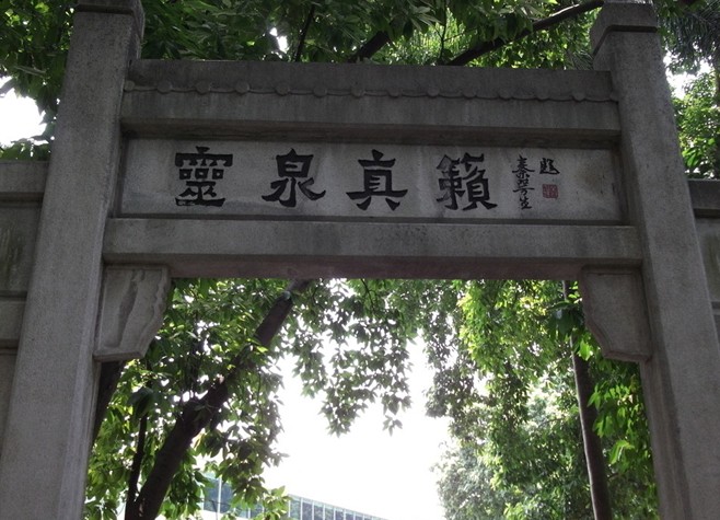 “古之楚庭”四字是以隸體字刻于石牌坊上。它是清代建造的。“楚庭”是人們所知的廣州最早使用的名字在明初朱亮祖構(gòu)建五層樓稍后。都指揮花英在越井崗建造了玉山樓和觀音閣。玉山樓久已不存,觀音閣亦早已廢圮?,F(xiàn)越井崗上的“佛山”石牌坊一帶就是觀音閣故址。