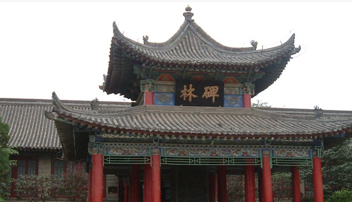 碑林博物館位于西安市文昌門內(nèi)三學街15號,原為陜西省博物館,建于1944年,它是在具有900多年歷史的“西安碑林”基礎(chǔ)上,利用西安孔廟古建筑群擴建而成的一座以收藏、研究和陳列歷代碑石、墓志及時刻造像為主的藝術(shù)博物館。館區(qū)由孔廟、碑林、石刻藝術(shù)室三部分組成,現(xiàn)有館藏文物11000余件,11個展室,陳列面積4900平方米。博物館本身即為孔廟舊址,其建置可追溯到北宋末年。照壁、牌坊、泮池、欞星門、華表、戟門、碑亭、兩廡等明清建筑保存至今,并遵循著孔廟固有的建筑格局,組成了一個綠樹掩映、古樸典雅的庭院式建筑群。