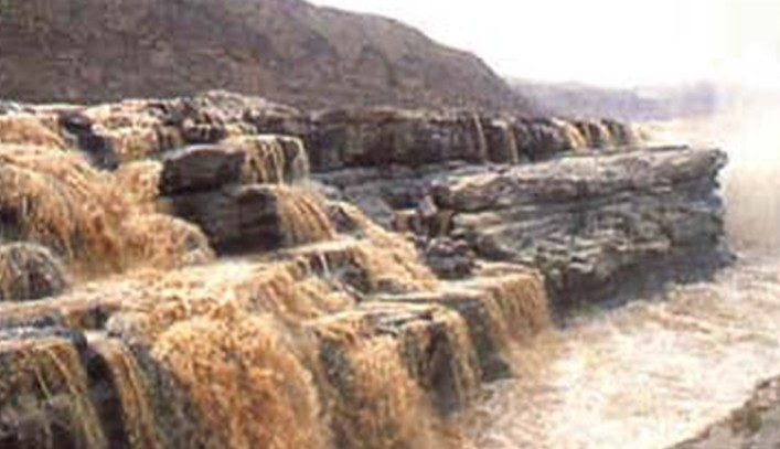 壺口瀑布形成的最主要是由于印支運動(始于距今約2億3千萬年)作用結(jié)果形成的兩組節(jié)理,一組為基本順河水流向發(fā)育(北北東,走向為15o);另一組為跨河發(fā)育的(北東東,70-80o走向)。此外,沿這兩組節(jié)理在瀑布的孕育段、形成段及消亡段也出現(xiàn)過一些斷層。由于在壺口及其孟門山以南地層傾角很小,節(jié)理發(fā)育,斷層偶見,地層又相當水平,所以,易于被構(gòu)造作用切割的支離破碎。所以說,壺口瀑布的形成是節(jié)理斷層發(fā)育和河水的強烈切割下蝕兩大因素所致。