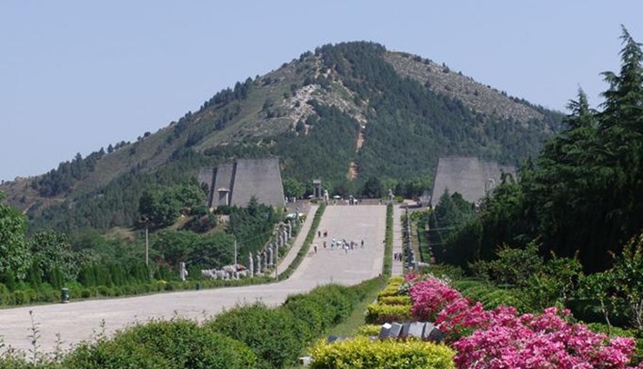 乾陵位于乾縣城北6公里的梁山上,是唐高宗李治和女皇帝武則天的合葬墓陵,墓因山為陵,氣勢雄偉壯觀。從乾陵頭道門踏上石階路,走完臺階即是一條平寬的道路直到“唐高宗陵墓”碑,這條道路便是“司馬道”。兩旁現(xiàn)有華表1對,翼馬、駝鳥各1對,石馬5對,翁仲10對,石碑2道。東為無字碑,西為述圣記碑。有王賓像61尊,石獅1對,周圍還有17座陪葬墓。“唐高宗陵墓”墓碑,高2米,是陜西巡府畢源為高宗所立,原碑已毀,現(xiàn)在這塊碑是清乾隆年間重建的。此碑右前側(cè)另一塊墓碑,是郭沫若題寫的“唐高宗李治與則天皇帝之墓”12個大字。乾陵附近還有永泰公主墓、章懷太子墓及懿德太子墓。