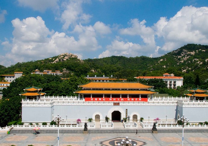 珠海市博物館(九洲城)坐落在珠海市吉大景山路,位于石景山旅游中心與珠海賓館之間,地處珠海旅游商貿(mào)、金融及政治、文化中心,是珠海的標(biāo)志性建筑之一。它以城樓、殿堂、幽廊、涼亭、水榭、園池等中國傳統(tǒng)建筑構(gòu)成古典園林風(fēng)貌建筑群。