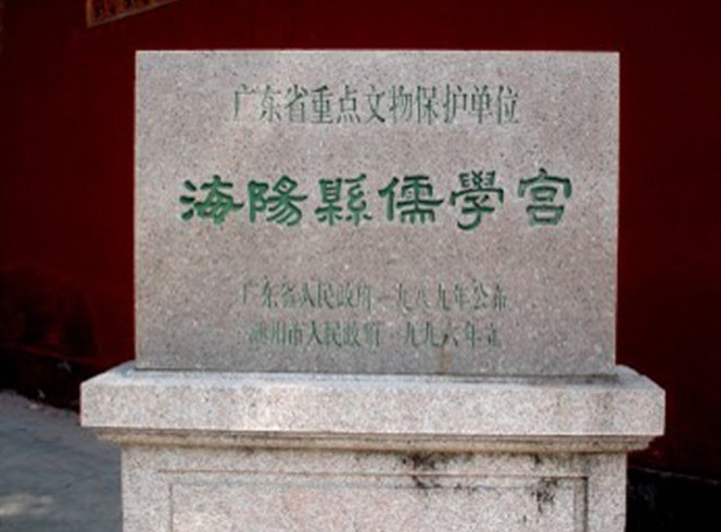 海陽縣儒學(xué)宮位于潮州城區(qū)昌黎路和文星路交界處。俗稱紅學(xué)、學(xué)宮。始建于南宋紹興年間,景炎三年(1278),后毀于火。明洪武二年(1369)重建大成殿,雖歷經(jīng)滄桑,其主要建筑大成殿仍完整地保留了明初粵東地區(qū)殿堂建筑的風(fēng)貌特點(diǎn),以后歷代屢有增建,始成規(guī)模宏大的建筑群。