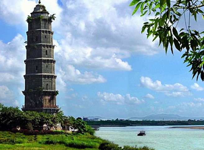 鳳凰塔獨(dú)特之風(fēng)采,引起歷代名士的贊美:“船如梭,橫織江中綿繡;塔作筆,仰作天下文章。” 正如鄭蘭枝所描寫的: