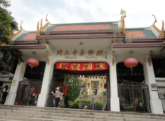 廣東潮州開元寺泰佛殿,位于韓江大橋東側(cè),慧如公園對面,是旅泰僑領(lǐng)、大慈善家謝慧如(1913—1996)捐巨資敬建,經(jīng)國務(wù)院宗教事務(wù)局批準,由潮州市自行設(shè)計、施工的中國大陸首座規(guī)模宏大的泰國式佛教梵宇,于1992年元宵落成剪彩,4月11日又舉行泰式銅鑄大佛開光法會。這是中泰友誼的一朵新花,中外佛教交流的碩果,為潮州歷史文化名城添彩。