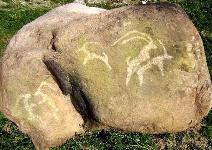 遺址中發(fā)現(xiàn)的石刀和石斧說明人類學(xué)會(huì)用石頭制作生產(chǎn)工具便進(jìn)入了石器時(shí)代。最初人們只能制作打制石器,當(dāng)人類掌握了磨制石器的技術(shù)以后,人類社會(huì)就由舊石器時(shí)代進(jìn)入新石器時(shí)代。其中:石刀為石質(zhì),黑色,橢圓形。長(zhǎng)11.5厘米,寬5.8厘米。磨制而成。四邊圓角,器形較規(guī)整。刃面比較粗糙,刃部鋒利,屬青銅時(shí)代諾木洪文化。石斧為石質(zhì),灰色,長(zhǎng)方形。長(zhǎng)23.5厘米,寬12.5厘米。兩側(cè)邊有對(duì)稱的凹口三對(duì),保留打擊痕跡,磨制,斜刃,屬青銅時(shí)代諾木洪文化。