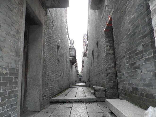 當(dāng)我隨意走進(jìn)一戶(hù)人家,迎面而來(lái)的,是一股陰冷的潮氣,它們帶給了我陌生人獨(dú)有的闖入感。主人不在,我步入一戶(hù)小院落。和頭頂那些張揚(yáng)肅穆的官帽屋頂不同,每一間屋舍,都顯得通俗而實(shí)用。所有的屋子結(jié)構(gòu)布局都大抵相同,院落坐東向西,東面三間屋,中間用木板屏風(fēng)分割成前堂和臥室,西面中間有一小天井,南北兩側(cè)各有一廚房和門(mén)廊。每間屋子的面積都不大,有的大屋還被分隔成了兩個(gè)小間,單間的門(mén)半開(kāi)半掩,小小的鐵窗透出一些光線(xiàn),并未把屋子照亮,只隱隱約約看到一些廢棄家具,一種塵封已久的泥土味夾雜其中,刺激而又安寧。從靠近巷道的一側(cè)門(mén)房退出,腳邊不遠(yuǎn)處有一個(gè)形狀酷似錢(qián)幣的眼洞,這就是“金錢(qián)眼”了——這眼洞在彰顯富貴的背后,卻也非常實(shí)用。雨季,水可沿巷道滑下,進(jìn)入眼洞,再通過(guò)暗渠匯入村前池塘。版權(quán)所有山東聊城聊之旅國(guó)際旅行社有限公司,轉(zhuǎn)載必究!而頭頂?shù)墓倜睒游輭Γ纸杏采巾斿伓椒饣鹕綁?,人稱(chēng)“鰲魚(yú)墻”,官帽兩耳是厚厚的麻條石墻,可起到隔火的作用。這種具有珠三角地區(qū)特色的造型象征官帽兩耳,后引申為“獨(dú)占鰲頭”的意思,只有擁有功名的人才能采用,后來(lái)在珠三角民居中被廣泛采納,遠(yuǎn)看墻體高聳嚴(yán)整,頓覺(jué)肅穆。