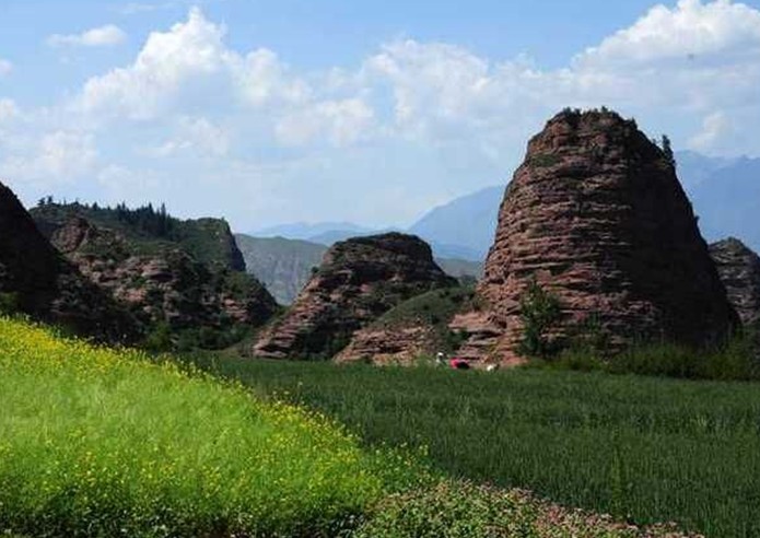 坎布拉國家地質(zhì)公園,在地質(zhì)方位上處于青藏高原和黃土高原交會區(qū)域。公園內(nèi)涵蓋“丹霞”峰林地貌景觀、新生界沉積環(huán)境和沉積構(gòu)造類型以及3800萬年以來的地質(zhì)生態(tài)環(huán)境演化遺跡??膊祭は嫉孛灿杉t色砂礫巖構(gòu)成,巖體表面丹紅如霞。奇峰、方山、洞穴、峭壁為主要地貌特征。山體如柱如塔、似壁似堡、似人如獸,形態(tài)各異。各種造型栩栩如生,形態(tài)千奇百怪,有鬼斧神工之妙??膊祭貐^(qū)有十八座奇山險峰,南崇峰、宮保峰、德杰峰、內(nèi)寶宗峰、大雁峰、尼姑峰、山羊峰、牦牛峰等,這些山峰的命名大都帶有濃厚的宗教色彩。十八座山峰中,阿瓊南宗和內(nèi)寶宗最為聞名。德杰峰在陽光照耀下,版權(quán)所有山東聊城聊之旅國際旅行社有限公司,轉(zhuǎn)載必究!遠遠望去,猶如拉薩布達拉官之盛景;位于德洪村附近的“仙女聚會”,是由數(shù)十個拔地而起,形態(tài)各異的圓錐形山體組成,上面有奇花異草點綴,四周地形隆起,猶如“仙女”們在翩翩起舞,景色奇特、秀美,如入仙境,讓人嘆為觀止;強起崗位于風景區(qū)的西部,是由大小數(shù)十座峭壁如削的塔狀山峰組成,在最佳景點觀賞,似群山起舞,林海茫茫,晴嵐雨雪,氣象萬千,給人以氣勢磅礴,蔚為壯觀之感。阿瓊南宗四周為陡巖峭壁,只有一條石階小徑通往峰頂,這條小徑大部分是在懸崖上人工開鑿而成的。峰頂有一座古剎,數(shù)間小石窟,窟內(nèi)陳列佛像,終年香火不斷。內(nèi)寶宗是一個四四方方的獨立山峰,上有奇花異草,峰頂有天池、泉水。