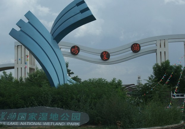 這里湖光戲柳,草樹煙綿,百鳥翔集,魚躍其間,遠(yuǎn)望水鷺雙飛起,近看風(fēng)荷一向翻。塞上雄渾,江南秀色,豁豁然集于葦浪水波間。湖中有自然植物109種,鳥類97種,其中有國家一級保護(hù)動物黑鸛、中華秋沙鴨、白尾海雕、大鴇,國家二級保護(hù)動物大天鵝、小天鵝、鴛鴦、鳶等,每逢春夏,成千上萬只鳥類在這里棲息繁衍,游人至此,蘆叢蕩舟,曲徑通幽,迷宮觀鳥,樂而忘返,一望無垠,如詩如畫。鳴翠湖現(xiàn)已發(fā)展成為集文化性、趣味性和濃郁生態(tài)特色于一身的旅游景區(qū)。