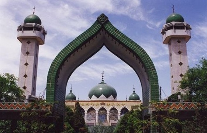 中國伊斯蘭教清真寺。位于寧夏回族自治區(qū)銀川市南關(guān)。據(jù)傳原寺始建于明朝末葉,系一中國古典式建筑群。規(guī)模宏大,布局嚴(yán)整。禮拜大殿有前廈后室。殿堂門窗為紅松木,雕刻工藝精美。南北廂房布置得體。“文化大革命”中被拆毀。1981年8月重建。新建寺面積為2074平方米,分上下兩層。禮拜大殿設(shè)于樓上,呈正方形,長寬各21米,宏偉壯麗。中部有綠色瓷磚飾面的4根方柱,殿頂為直徑9.5米的巨型穹頂。穹頂?shù)撞颗c方柱之間為一段圓柱體的鼓座,上開24扇高窗,寬敞明亮,視野開闊。穹頂正中高懸月形燈,跨地面22米,高聳入云。下層為小禮拜殿、男女沐浴室、會客室、宿舍等。其間有回廊相連,自成一體。整個建筑典雅華美,莊重宏偉,呈現(xiàn)出典型的阿拉伯建筑特色。