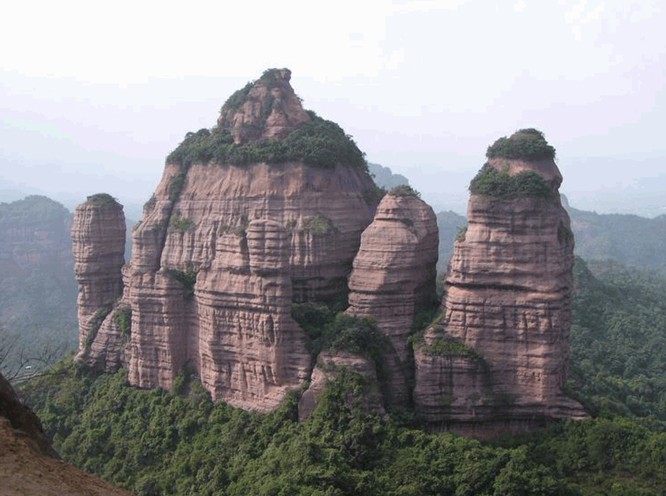 2、丹霞山:位于粵北韶關(guān)市仁化縣城南九公里處,以“奇,險(xiǎn),美”著稱,因“色如渥丹,爛若明霞”而得名。“桂林山水甲天下,不如廣東一丹霞。”這是人們對(duì)丹霞山的贊美之語。