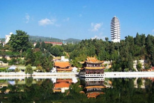 沿著700余級(jí)臺(tái)階登上山頂觀城亭,保山城及保山壩盡收眼底,令人心曠神怡。山頂是一個(gè)50多畝的大平場(chǎng),建有西南第二大的武侯祠,紀(jì)念三國(guó)時(shí)的諸葛亮。