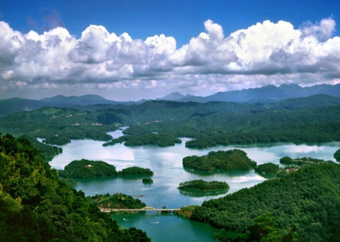 流溪河國家森林公園是經(jīng)林業(yè)部批準建立的首批國家十大森林公園之一,總面積8831公頃,其中流溪湖于一九五八年建成,面積1466公頃,蓄水量3.6億立方米,水深約70米,在碧波萬傾的湖面上,分布著大小二十二個島嶼,如白玉翡翠。在公園的東南部,聳立著五指山、牛角山、雞枕山等海拔千米以上的山峰六座。其中雞枕山海拔1146.7米,是公園內(nèi)第一高峰。登高望遠,一派“遠山時明滅”、高峽出平湖“的壯觀景象奔來眼底,使人頓覺置身仙幻奇景之中。