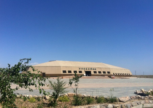 水洞溝遺址博物館建筑面積4308平方米,外形仿水洞溝出土的石器,是我國西北地區(qū)唯一展示舊石器時(shí)代文化面貌的主題博物館。它在傳統(tǒng)博物館參觀性功能的基礎(chǔ)上融入藝術(shù)性、文學(xué)性和高科技的創(chuàng)新元素。以270度超大型半景畫、實(shí)景、幻影成像等展示形式,結(jié)合世界最先進(jìn)的聲、光、電、可調(diào)式地震平臺(tái)等技術(shù)的運(yùn)用。