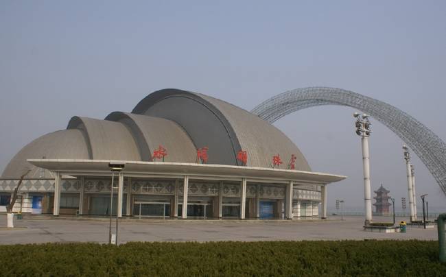劇場的整體結(jié)構(gòu)造型設(shè)計(jì)新穎獨(dú)特,不僅傳承了中國傳統(tǒng)的建筑風(fēng)格,同時(shí)也傳遞了西方的建筑文化理念。劇場占地面積9900平方米,高度33米,直徑86米。劇場下部為鋼筋混凝土底座,具有抵抗七級地震的能力。劇場上部為能夠旋轉(zhuǎn)的拱形鋼結(jié)構(gòu),外觀為一大一小半球形狀,兩個(gè)半球之間有過渡拱(3號拱)銜接。西面小的半球(1號拱和2號拱)是固定不動的。東面大的半球(4號拱)可以進(jìn)行水平方向180度的旋轉(zhuǎn)。中間3號拱可以東西平移。這種開啟、閉合的獨(dú)特功能在全國是獨(dú)一無二的,可以使觀眾充分領(lǐng)略到露天劇場與封閉劇院兩種效果的不同風(fēng)采。