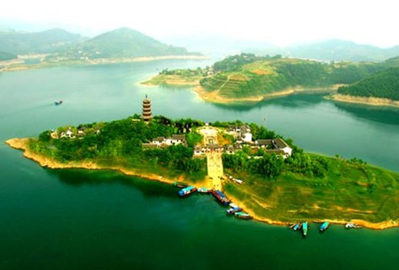 從空中俯看象一只美麗的孔雀開屏,四周又在青山綠水碧波之間,因此取名翠屏島。從安康乘車經(jīng)瀛湖鎮(zhèn)入進島路全長30公里,距金螺島僅一公里。
