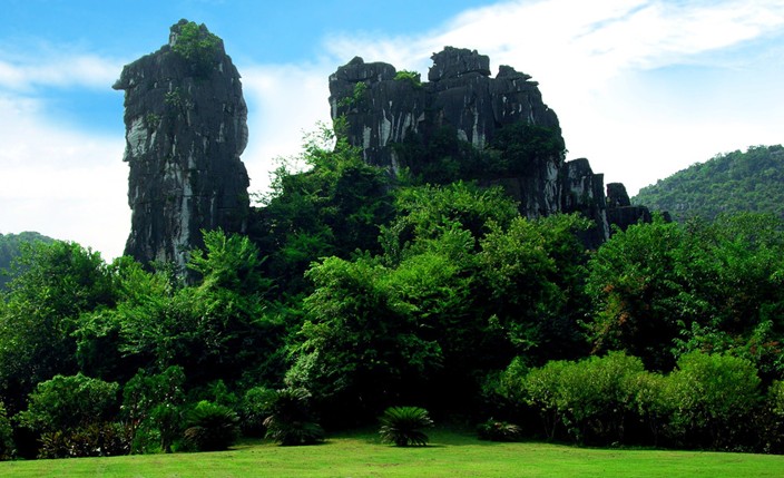 駱駝山位于桂林七星公園內(nèi)。駱駝山即駝峰,在普陀山南麓,是地殼運動融蝕后的一塊殘石,原名酒壺山。廣西駱駝山在廣西桂林七星公園內(nèi),為桂林市名山之一,原名酒壺山。因其狀態(tài)酷似駱駝,遂名之。但它又酷似一把古式酒壺,因此又名壺山。有壺身、壺嘴,壺嘴下有塊石頭,恰似酒杯。壺嘴(山南)上刻有“壺山”二字,旁鐫“雷酒人之墓”。雷酒人原名雷鳴春,號亮工,明末江南儒士。他俠義助人,醫(yī)道甚高,善詩文,嗜酒,每飲必醉,人稱“雷酒人”。他結(jié)廬山下,遍栽桃李,每當(dāng)春暖花開,如一片菲紅的彩霞,故有“壺山赤霞”之譽,為桂林續(xù)八景之一。每當(dāng)晨昏,霞光映耀山石,色澤斑斕,頗為壯觀。明清以來,山下遍植桃樹,若逢春至,桃花爛漫,江霞紫霧,分外妖嬈。