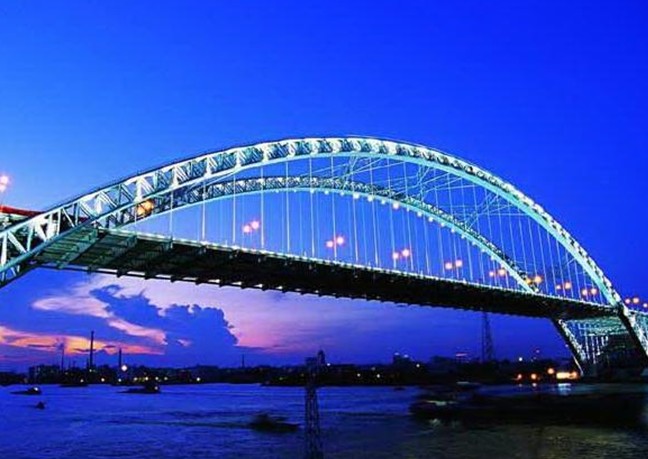 珠江河上11座橋:人民橋、海珠橋、海印橋、洛溪大橋、珠江大橋、廣州大橋,還有新建的解放大橋、江灣橋、華南大橋、鶴洞大橋,和獵德大橋,以及珠江過江隧道,把珠江南北兩岸和芳村區(qū)連成一片;兩岸星級(jí)賓館、商廈林立:白天鵝賓館、華廈大酒店、南方大廈、愛群大廈、廣州賓館、廣信江灣大酒直聳云天;夜晚,兩岸燈火璀璨,明月高懸,“珠江夜游”游輪載著滿船游客自西向東,輕泛珠江水,共奏歡樂曲。