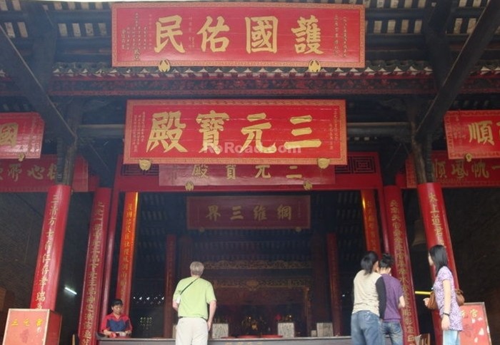 三元殿是整座廟觀的中心。越崗院之所以改名為三元宮,是因?yàn)槊魅f(wàn)歷和崇禎年間擴(kuò)建之后,殿內(nèi)供奉著三元大帝,所以三元宮的三個(gè)誕日也是因?yàn)檫@三元大帝三元誕的緣故,即正月十五、七月十五和十月十五的上元天官、中元地官和下元水官的誕辰日,道教定此三日為齋戒日。依道家所說(shuō),天、地、水為三元,“夫混飩分后,有天、地、水三元三氣,生成人倫,長(zhǎng)養(yǎng)萬(wàn)物”。又有上元天官(堯)、中元地官(舜)和下元水官(禹)之說(shuō)。這說(shuō)明三官神在道教中的崇高地位。由于道教吸收了民間對(duì)天、地、水的自然崇拜,奉天、地、水三官為主宰人間禍福的大神。民間普遍信奉天官能賜福,地官可赦罪,水官會(huì)解厄運(yùn)。因而一年四季香煙繚繞,到了三元誕的日子,這里更是人聲沸揚(yáng),香火鼎盛,善男信女來(lái)此參拜神仙,保佑平安。