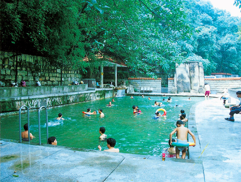 北溫泉的水溫一般為35℃-37℃,日流量達(dá)5675噸,屬弱堿性硫酸型礦泉,水中富含多種微量元素,不僅含鈣量高,水中還含有稀有的氡元素,對皮膚、關(guān)節(jié)、腸胃等部位疾病療病效果極佳。創(chuàng)建公園以后幾經(jīng)擴(kuò)建,目前已擁有室內(nèi)浴室75間,長50米、寬16米的國家標(biāo)準(zhǔn)游泳池一個、現(xiàn)又新建了室內(nèi)游泳三角池和兒童嬉水池。此外,北溫泉附近存有唐宋以來的眾多題刻,還是中國游泳隊的訓(xùn)練基地之一。