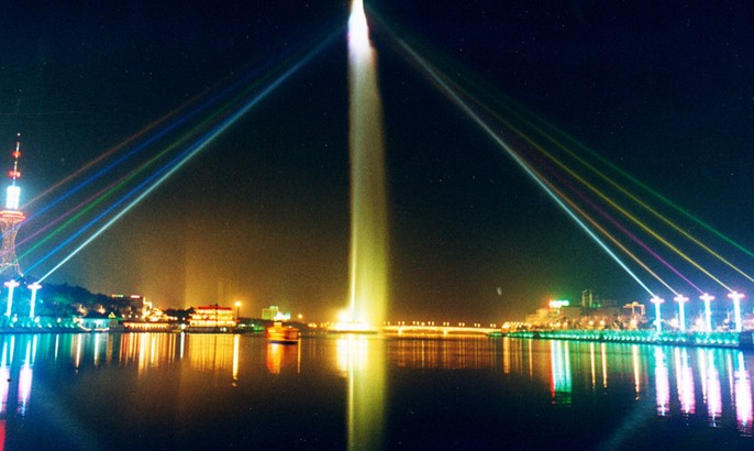 于1998年10月1日動工,1999年2月6日竣工。 噴泉集聲、光、水、色于一體, 由主噴和副噴兩部分組成。主噴169米的水柱直沖云霄,氣勢雄偉,蔚然壯觀,顯示出欲與天公試比高的氣派,為目前亞洲第一高噴泉;副噴由1068個噴嘴、618盞水下彩燈組成,在歡快愉悅的樂曲中,通過直噴、水簾、水浪、水松、內(nèi)拋、搖擺、編網(wǎng)等8種水型。