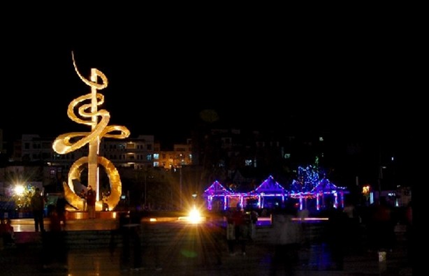 巴馬壽鄉(xiāng)廣場(chǎng)位于巴馬縣城,規(guī)劃設(shè)計(jì)充分吸納了巴馬長(zhǎng)壽之鄉(xiāng)、瑤族圖騰等民族文化特色,同時(shí)濃縮了巴馬山清水秀的地理特征。旋轉(zhuǎn)奔放的平面構(gòu)圖, 層層疊落的音樂(lè)噴泉,版權(quán)所有山東聊城聊之旅國(guó)際旅行社有限公司,轉(zhuǎn)載必究!氣勢(shì)蓬勃的“壽”字雕塑,既反映了巴馬團(tuán)結(jié)和諧的民族氛圍,又體現(xiàn)全縣上下改革創(chuàng)新的精神與力量,廣場(chǎng)建成后已經(jīng)成為巴馬文化、集會(huì)、休閑的理想場(chǎng)所。